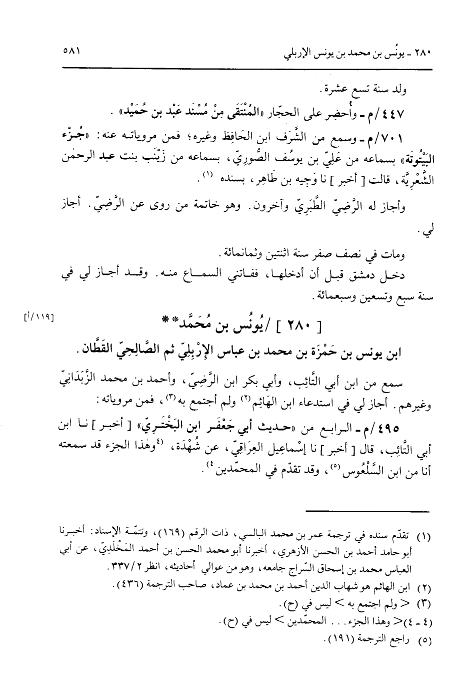 [280] يوسن بن محمد ابن يونس ابن حمزة بن محمد بن عباس الإربلي ثم الصالحي القطان.