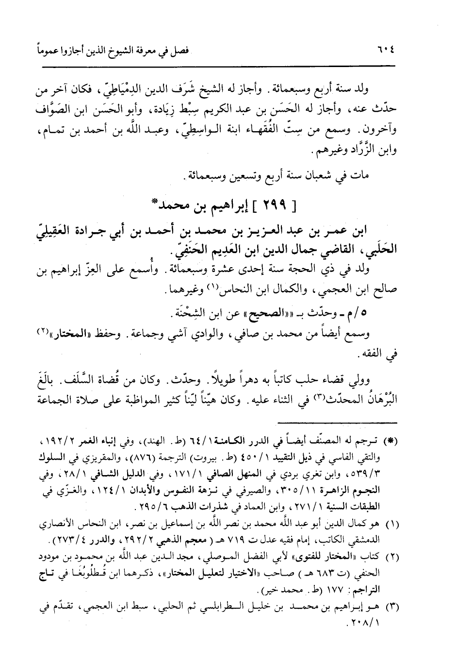 [299] إبراهيم بن محمد ابن عمر بن عبد العزيز بن محمد بن أحمد بن أبي جرادة العقيلي الحلبي القاضي جمال الدين ابن العديم الحنفي.