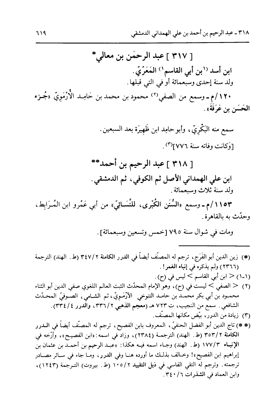 [318] عبد الرحيم بن أحمد ابن علي الهمداني الأًل ثم الكوفي ثم الدمشقي.