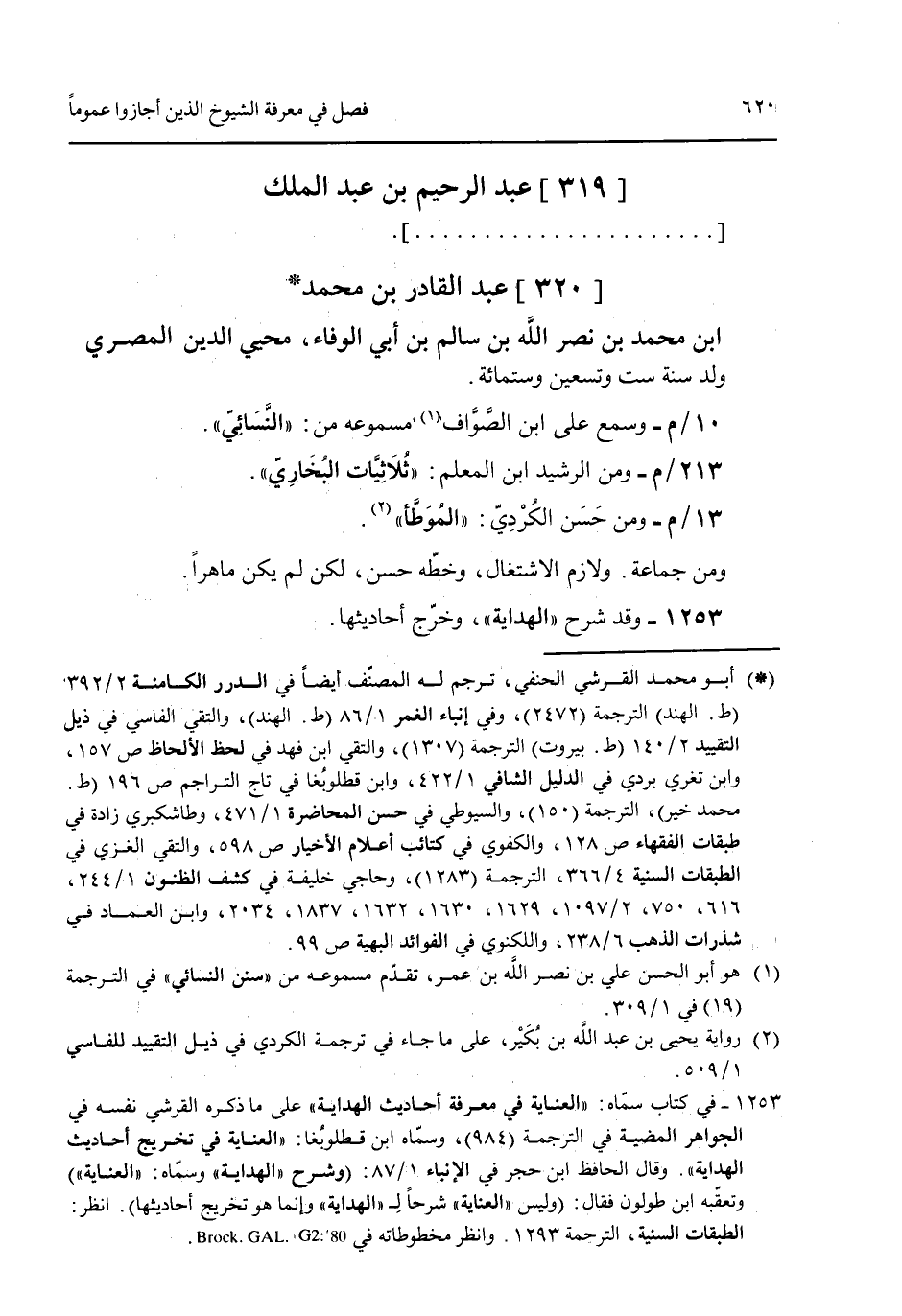 [320] عبد القادر بن محمد ابن محمد بن نصر الله بن سالم بن أبي الوفاء محيي الدين المصري ولد سنة ست وتسعين وستمائة.