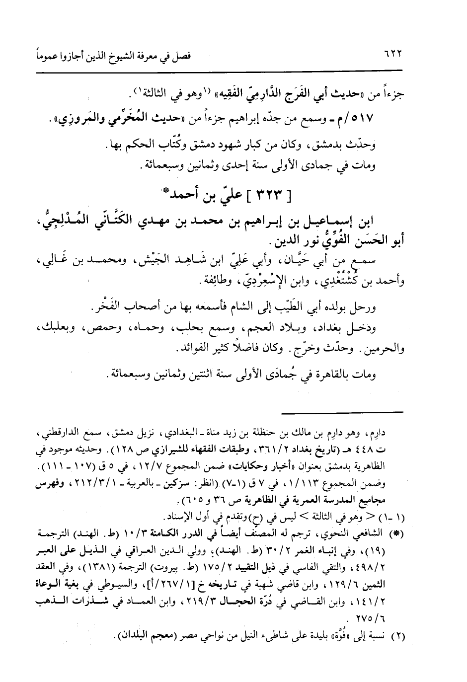 [323] على بن أحمد بن إسماعيل بن إبراهيم بن محمد بن مهدي الكتاني المدلجي أبو الحسن الفوي نور الدين.
