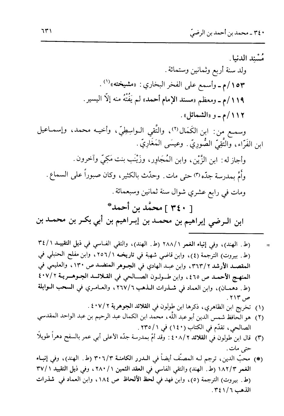 [340] محمد بن أحمد ابن الرضي إبراهيم بن محمد بن إبراهيم بن أبي بكر بن محمد بن