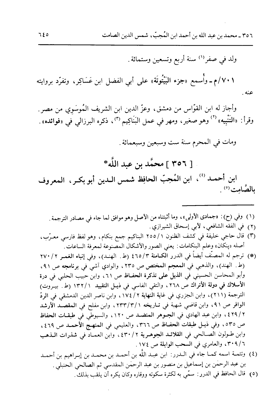 [356] محمد بن عبد الله ابن أحمد ابن المحب الحافظ شمس الدين أبو بكر المعروف بالصامت.