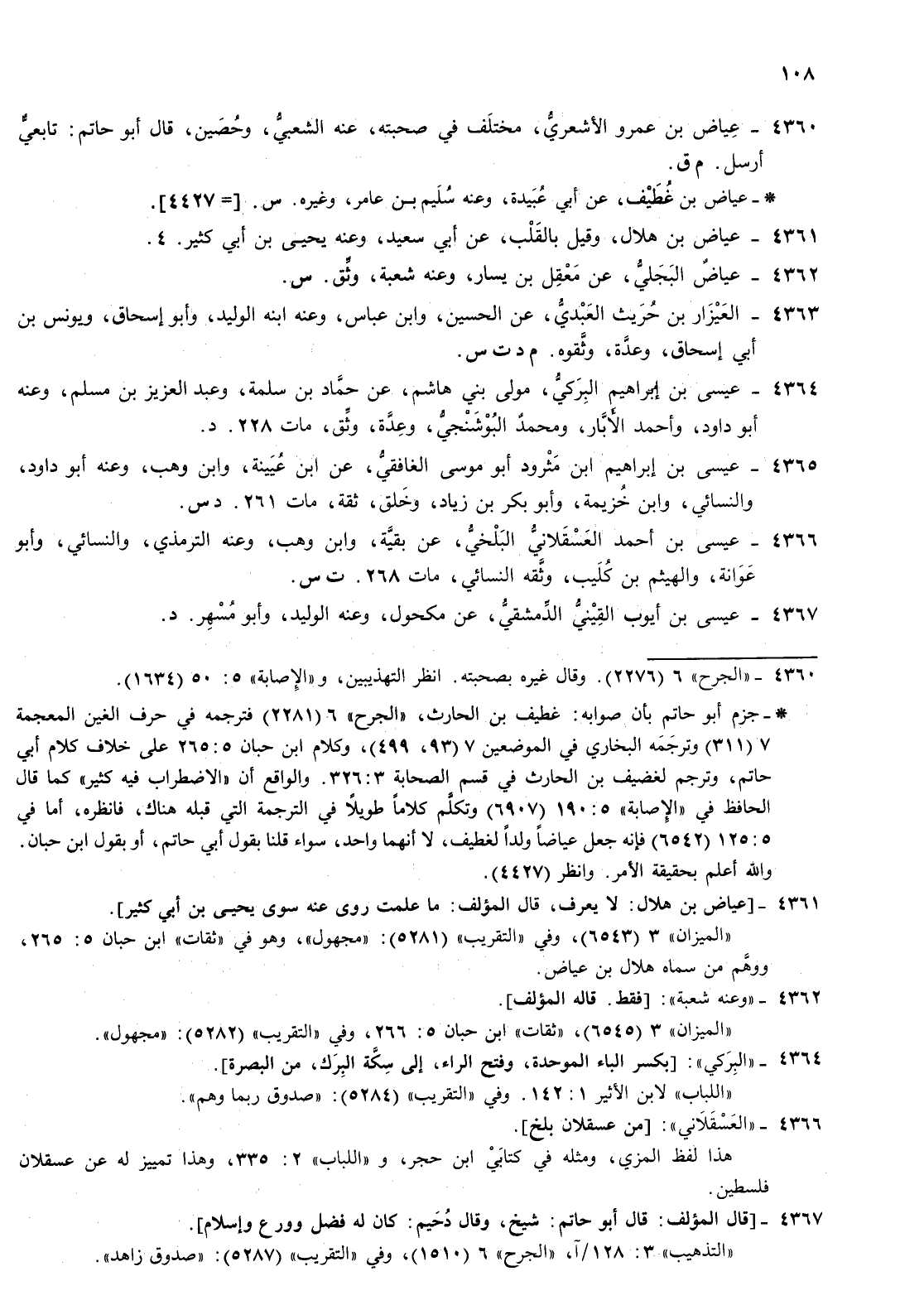 4360- عياض بن عمرو الاشعري مختلف في صحبته عنه الشعبي وحصين قال أبو حاتم تابعي أرسل م ق عياض بن غطيف عن أبي عبيدة وعنه سليم بن عامر وغيره سعياض بن غطيف عن أبي عبيدة وعنه سليم بن عامر وغيره س 4427