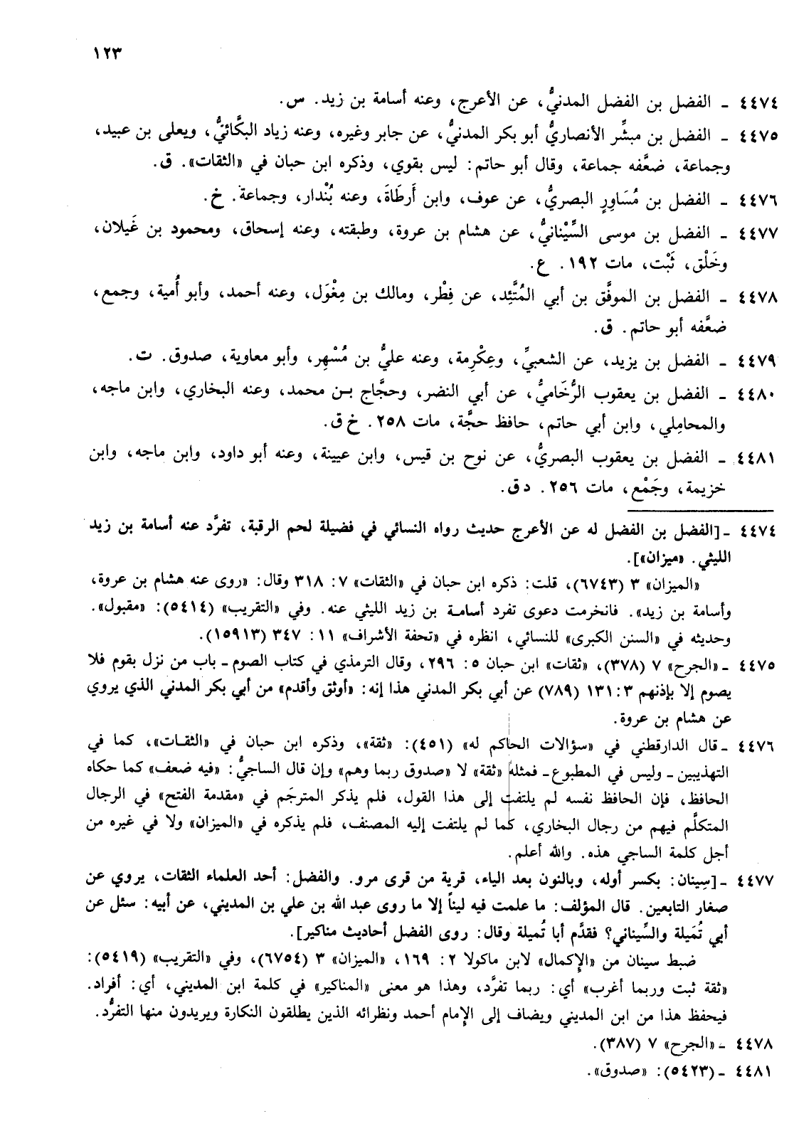 4474- الفضل بن الفضل المدني عن الاعرج وعنه أسامة بن زيد س