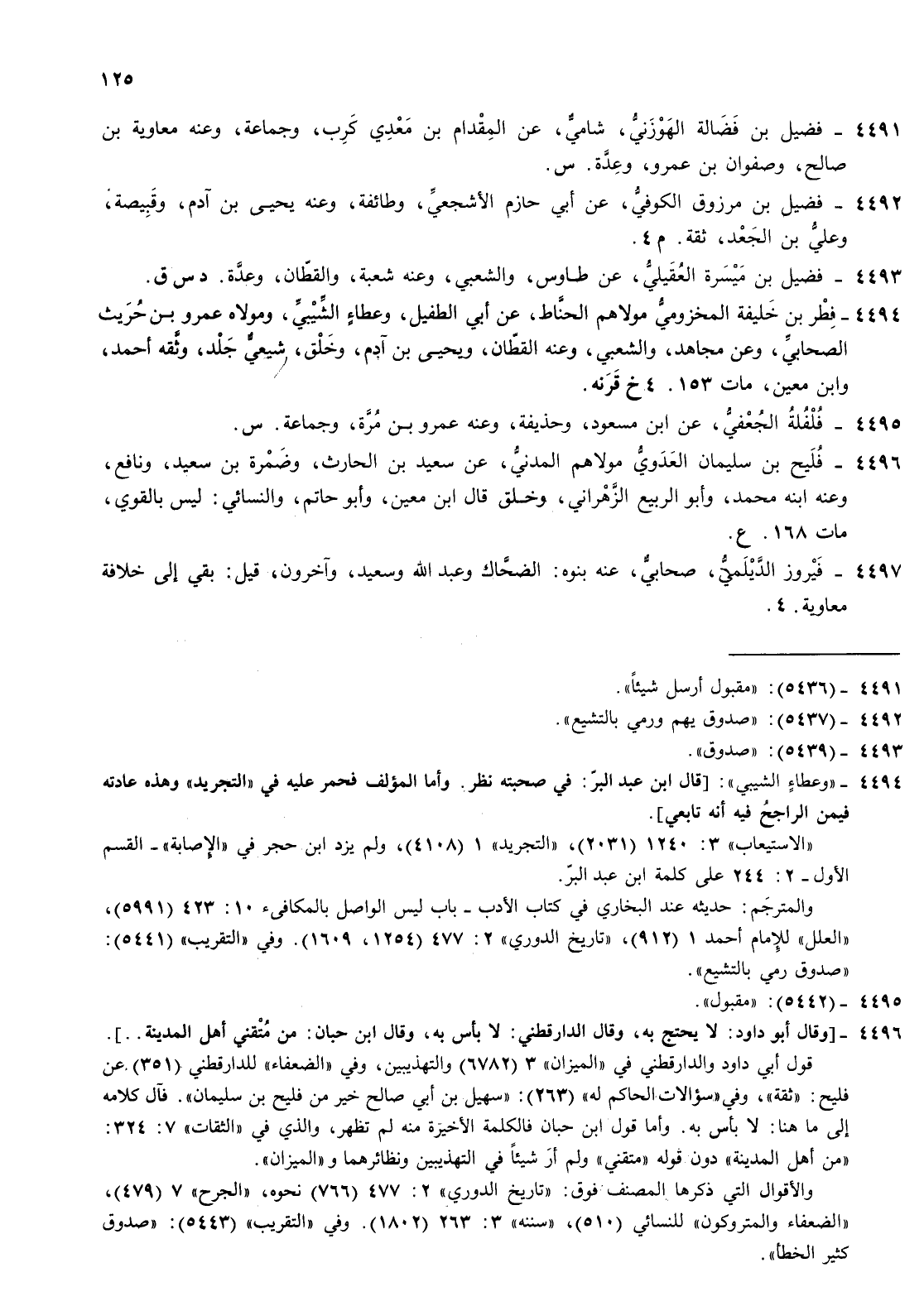 4493- فضيل بن ميسرة العقيلي عن طاوس والشعبي وعنه شعبة والقطان وعدة د س ق