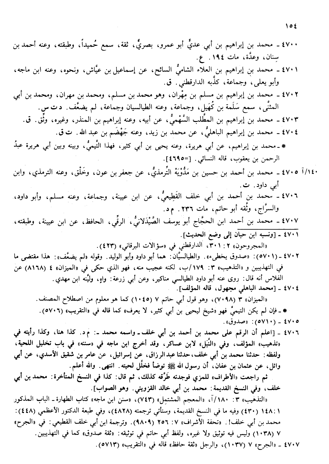 4700- محمد بن إبراهيم بن أبي عدي أبو عمرو بصري ثقة سمع حميدا وطبقته وعنه أحمد بن سنان وعدة مات 194 ع