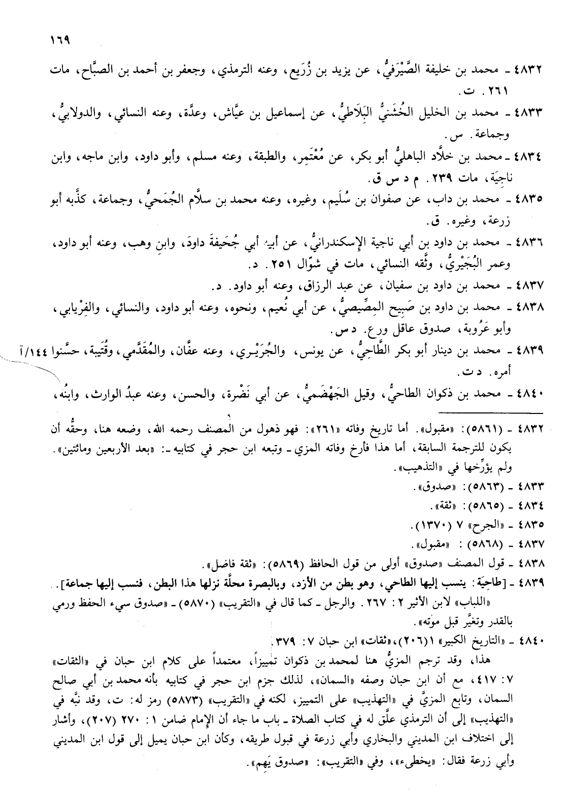 4834- محمد بن خلاد الباهلي أبو بكر عن معتمر والطبقة وعنه مسلم وأبو داود وابن ماجة وابن ناجية مات 239 م د س ق