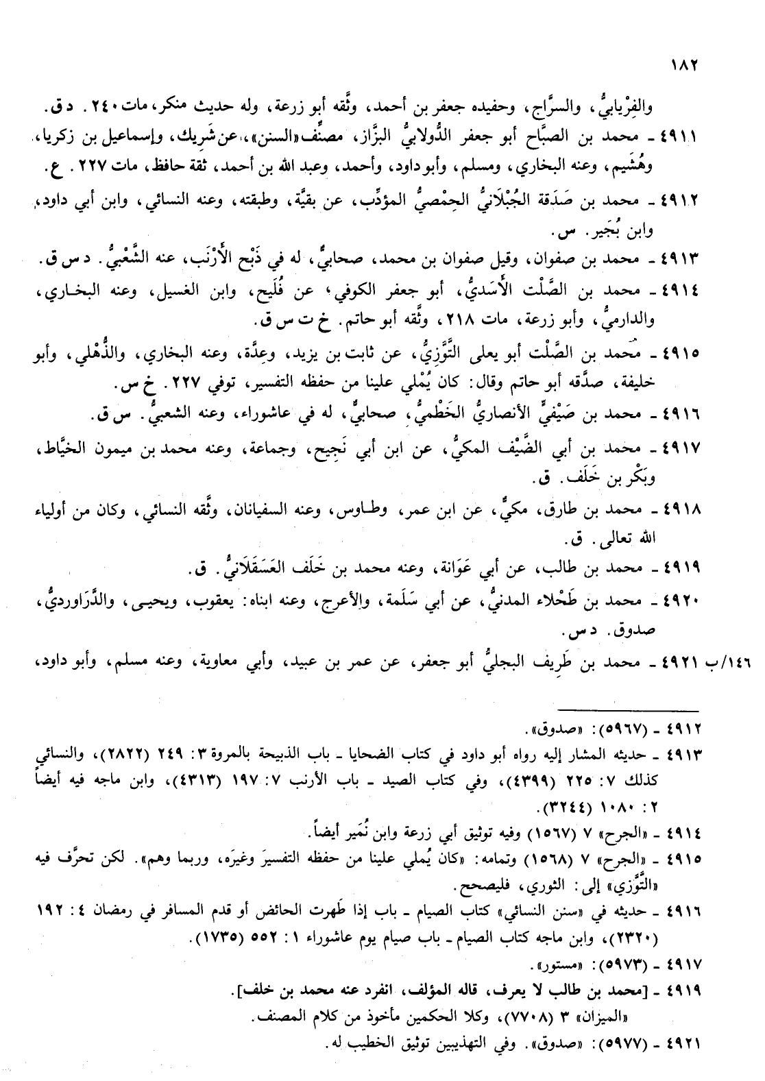 4912- محمد بن صدقة الجبلاني الحمصي المؤدب عن بقية وطبقته وعنه النسائي وابن أبي داود وابن بجير س