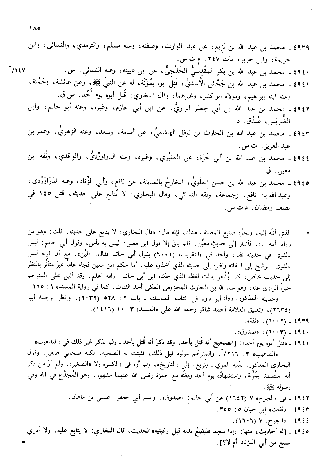 4939- محمد بن عبد الله بن بزيع عن عبد الوارث وطبقته وعنه مسلم والترمذي والنسائي وابن خزيمة وابن جرير مات 247 م ت س