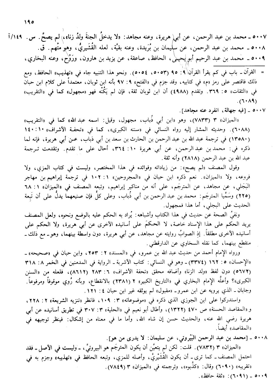 5007- محمد بن عبد الرحمن عن أبي هريرة وعنه مجاهد لا يدخل الجنة ولد زنا لم يصح س