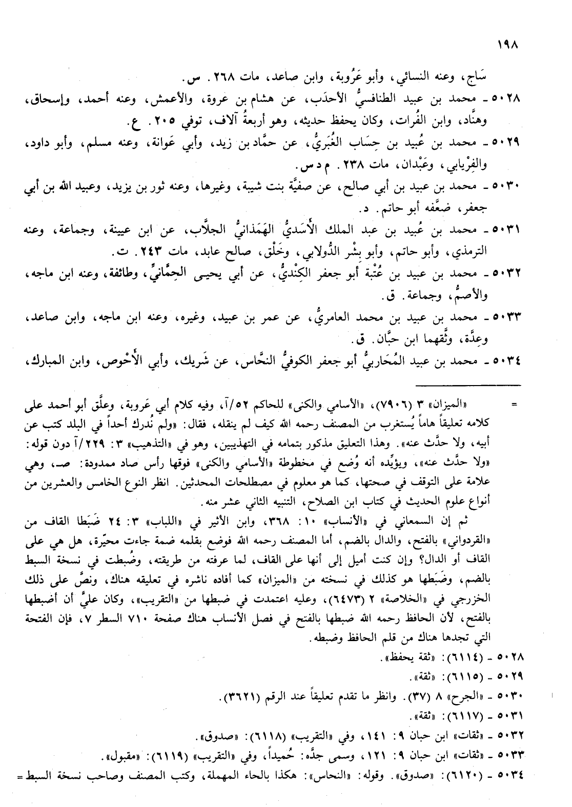 5031- محمد بن عبيد بن عبد الملك الاسدي الهمذاني الجلاب عن بن عيينة وجماعة وعنه الترمذي وأبو حاتم وأبو بشر الدولابي وخلق صالح عابد مات 243 ت
