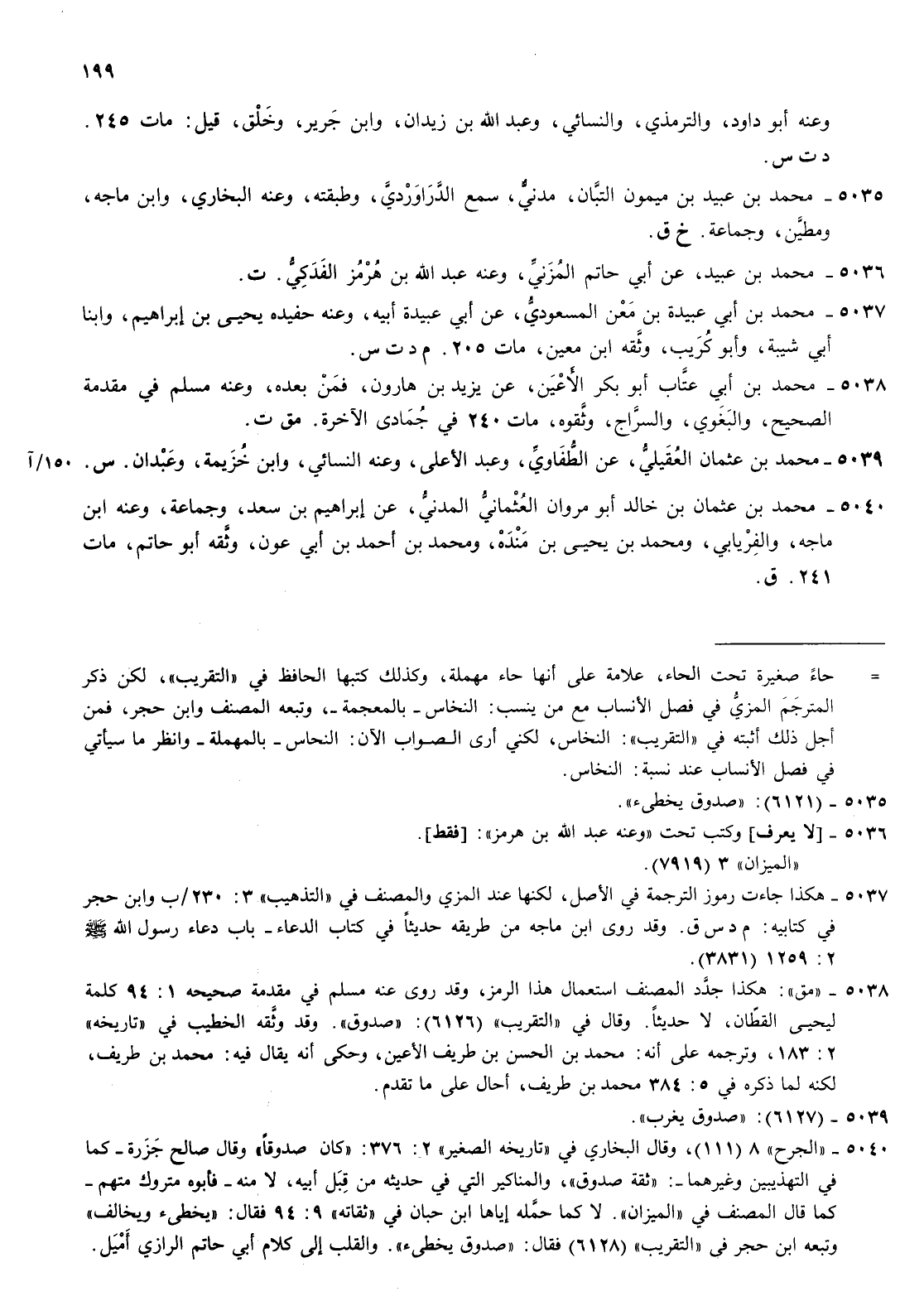 5035- محمد بن عبيد بن ميمون التبان مدني سمع الدراوردي وطبقته وعنه البخاري وابن ماجة ومطين وجماعة خ ق