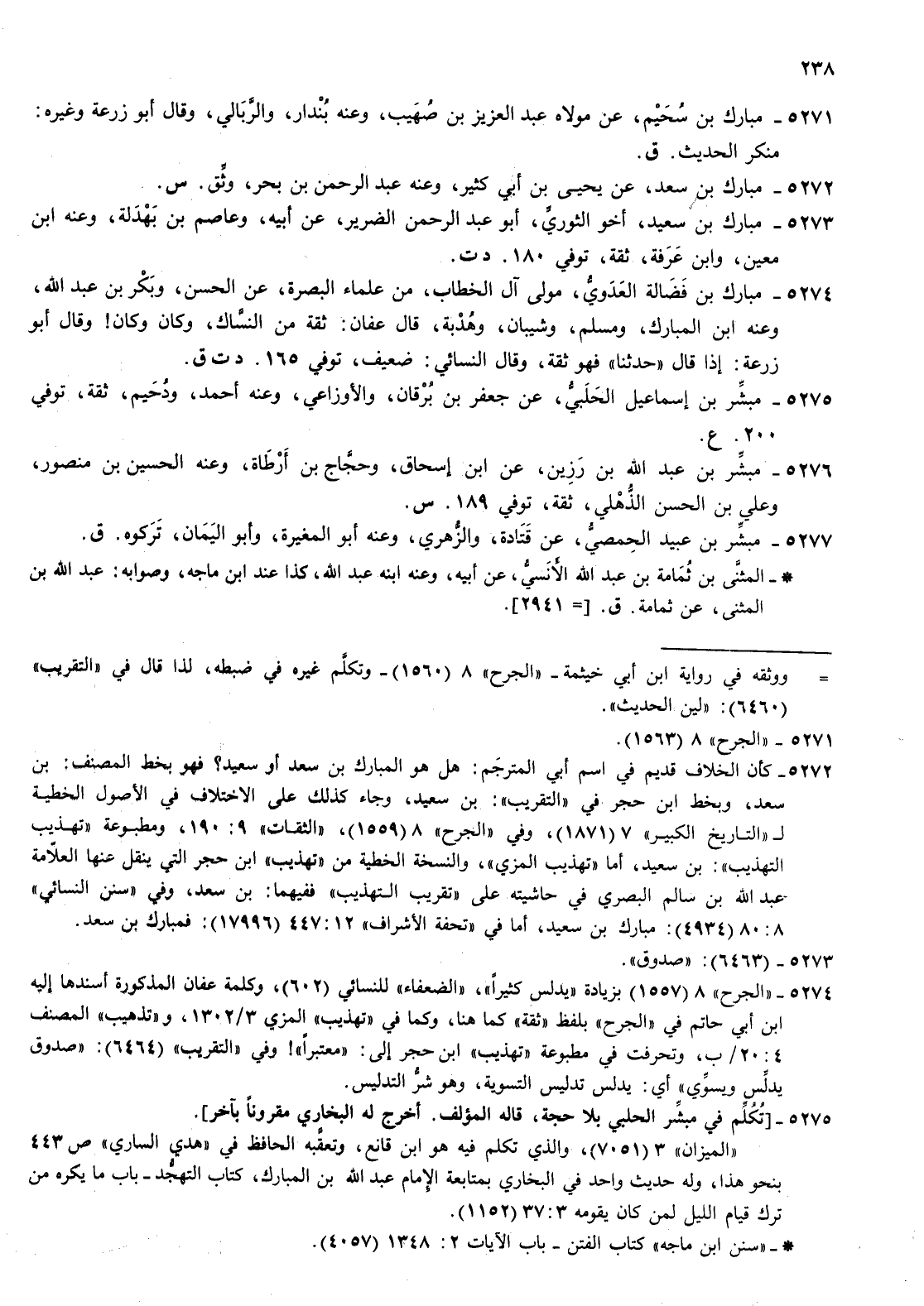 5273- مبارك بن سعيد أخو الثوري أبو عبد الرحمن الضرير عن أبيه وعاصم بن بهدلة وعنه بن معين وابن عرفة ثقة توفي 18 د ت