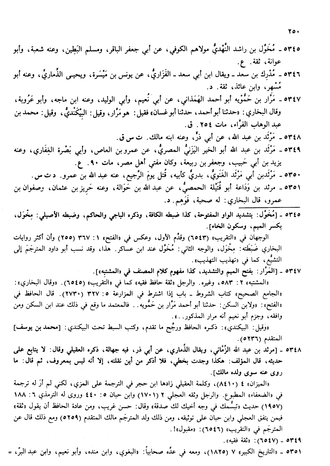 5347- مرار بن حمويه أبو أحمد الهمذاني عن أبي نعيم وأبي الوليد وعنه بن ماجة وأبو عروبة وقال البخاري حدثنا أبو أحمد حدثنا أبو غسان فقيل هو مرار وقيل البيكندي وقيل محمد بن