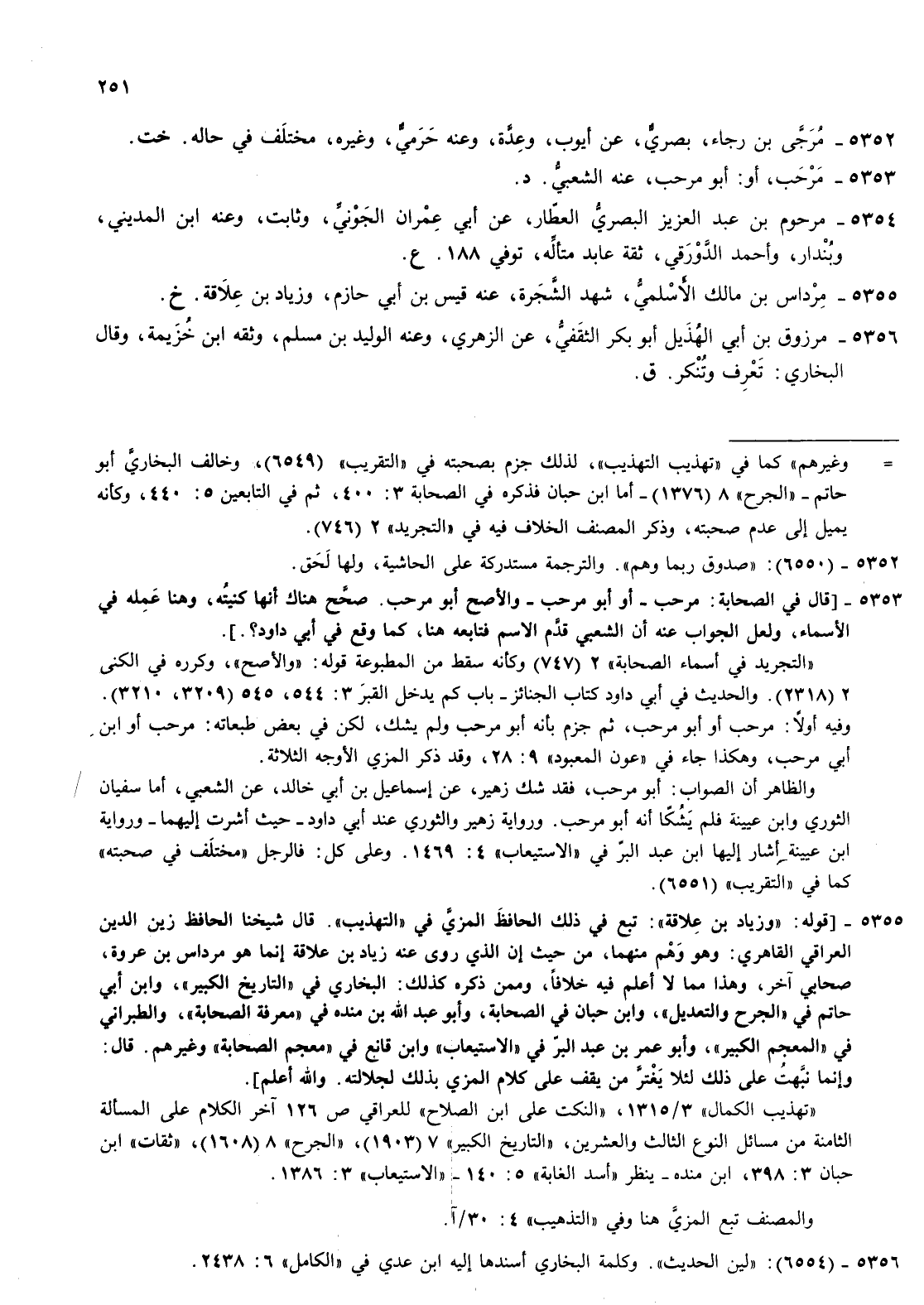5354- مرحوم بن عبد العزيز البصري العطار عن أبي عمران الجوني وثابت وعنه بن المديني وبندار وأحمد الدورقي ثقة عابد متأله توفي 188 ع