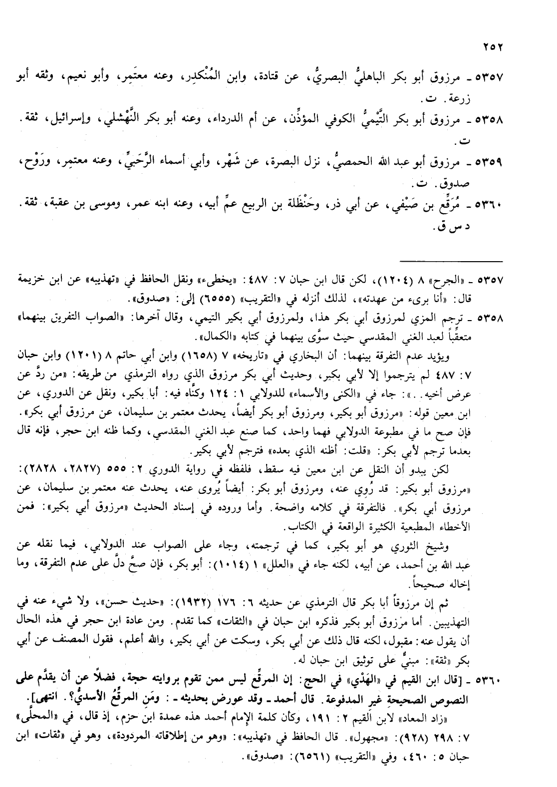 5357- مرزوق أبو بكر الباهلي البصري عن قتادة وابن المنكدر وعنه معتمر وأبو نعيم وثقه أبو زرعة ت