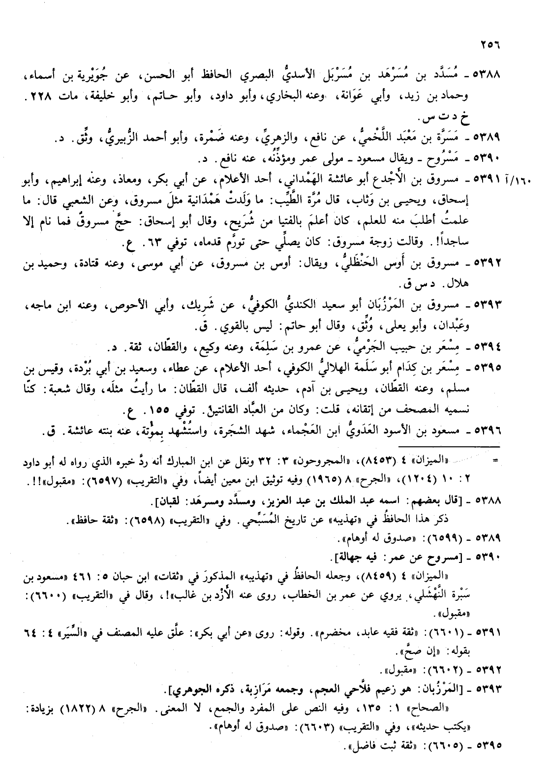 5388- مسدد بن مسرهد بن مسربل الاسدي البصري الحافظ أبو الحسن عن جويرية بن أسماء وحماد بن زيد وأبي عوانة وعنه البخاري وأبو داود وأبو حاتم وأبو خليفة مات 228 خ د ت س