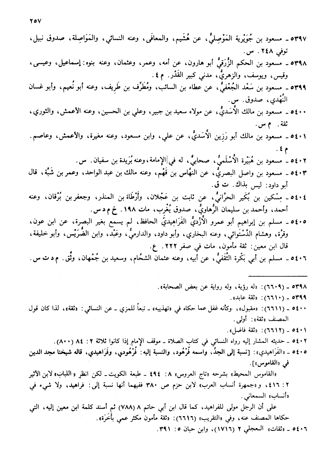5397- مسعود بن جويرية الموصلي عن هشيم والمعافى وعنه النسائي والمواصلة صدوق نبيل توفي 248 س