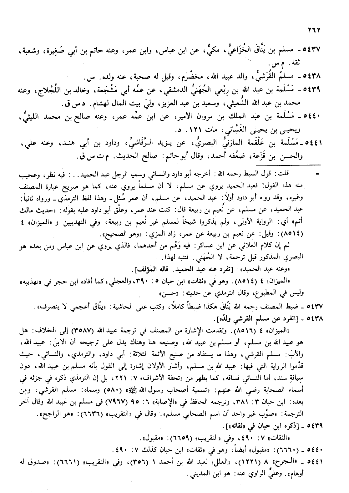 5438- مسلم القرشي والد عبيد الله مخضرم وقيل له صحبة عنه ولده س