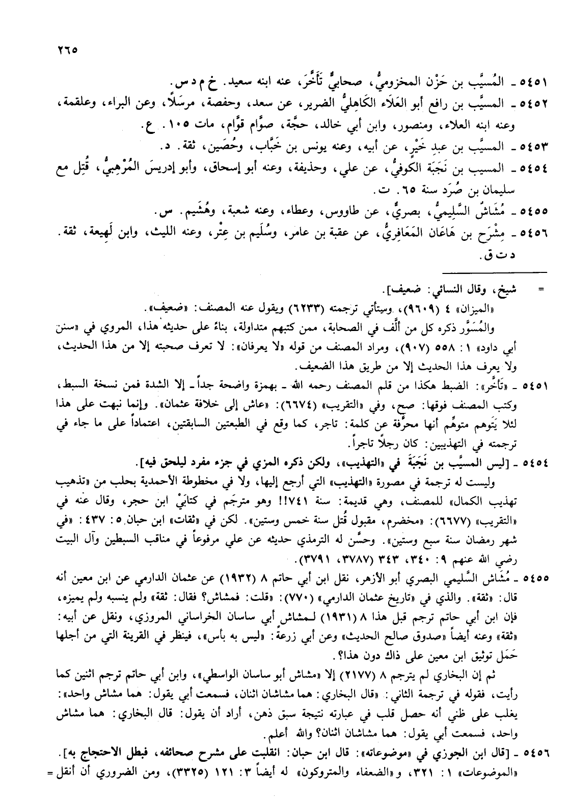 5452- المسيب بن رافع أبو العلاء الكاهلي الضرير عن سعد وحفصة مرسلا وعن البراء وعلقمة وعنه ابنه العلاء ومنصور وابن أبي خالد حجة صوام قوام مات 105 ع