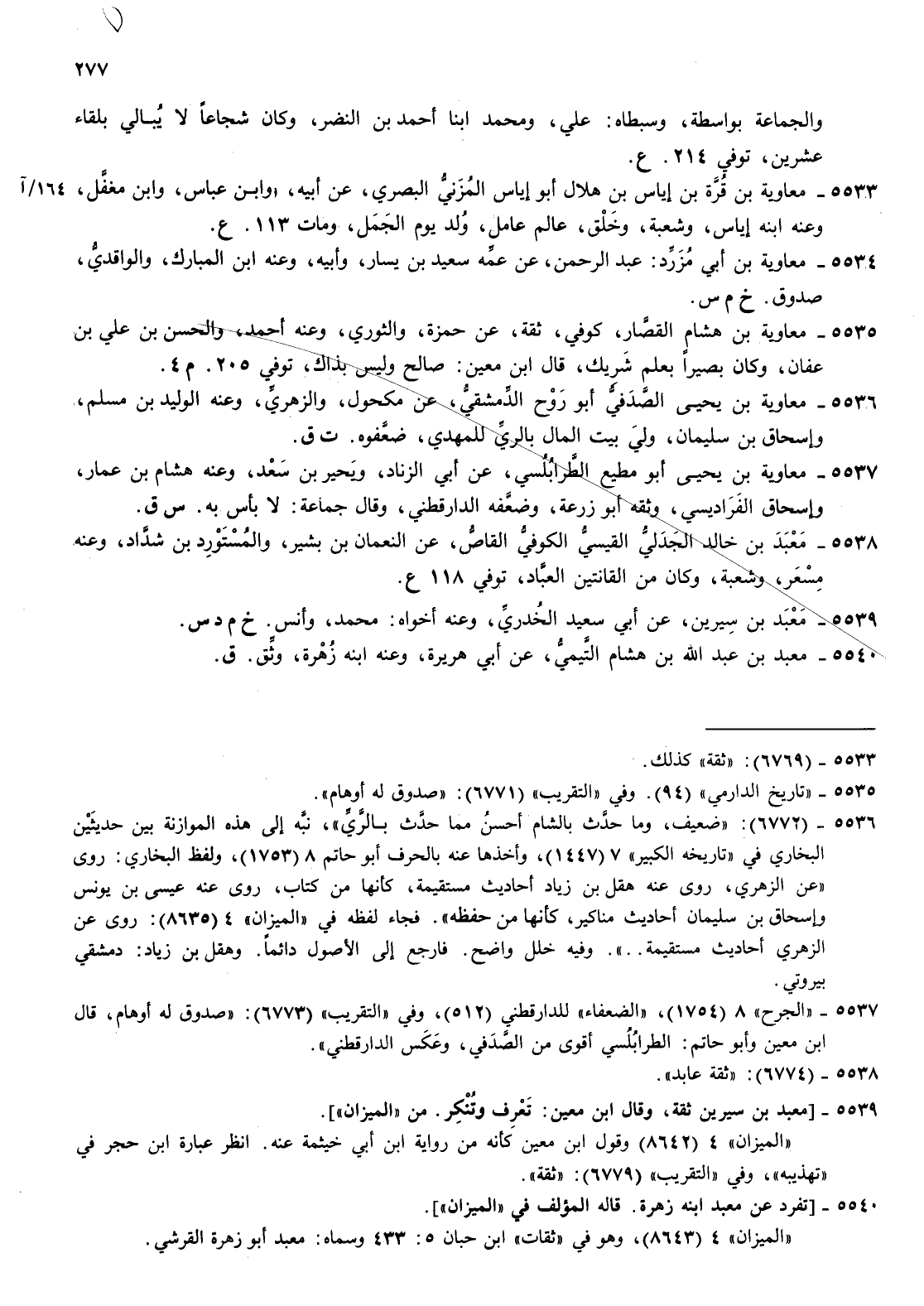 5536- معاوية بن يحيى الصدفي أبو روح الدمشقي عن مكحول والزهري وعنه الوليد بن مسلم وإسحاق بن سليمان ولي بيت المال بالري للمهدي ضعفوه ت ق