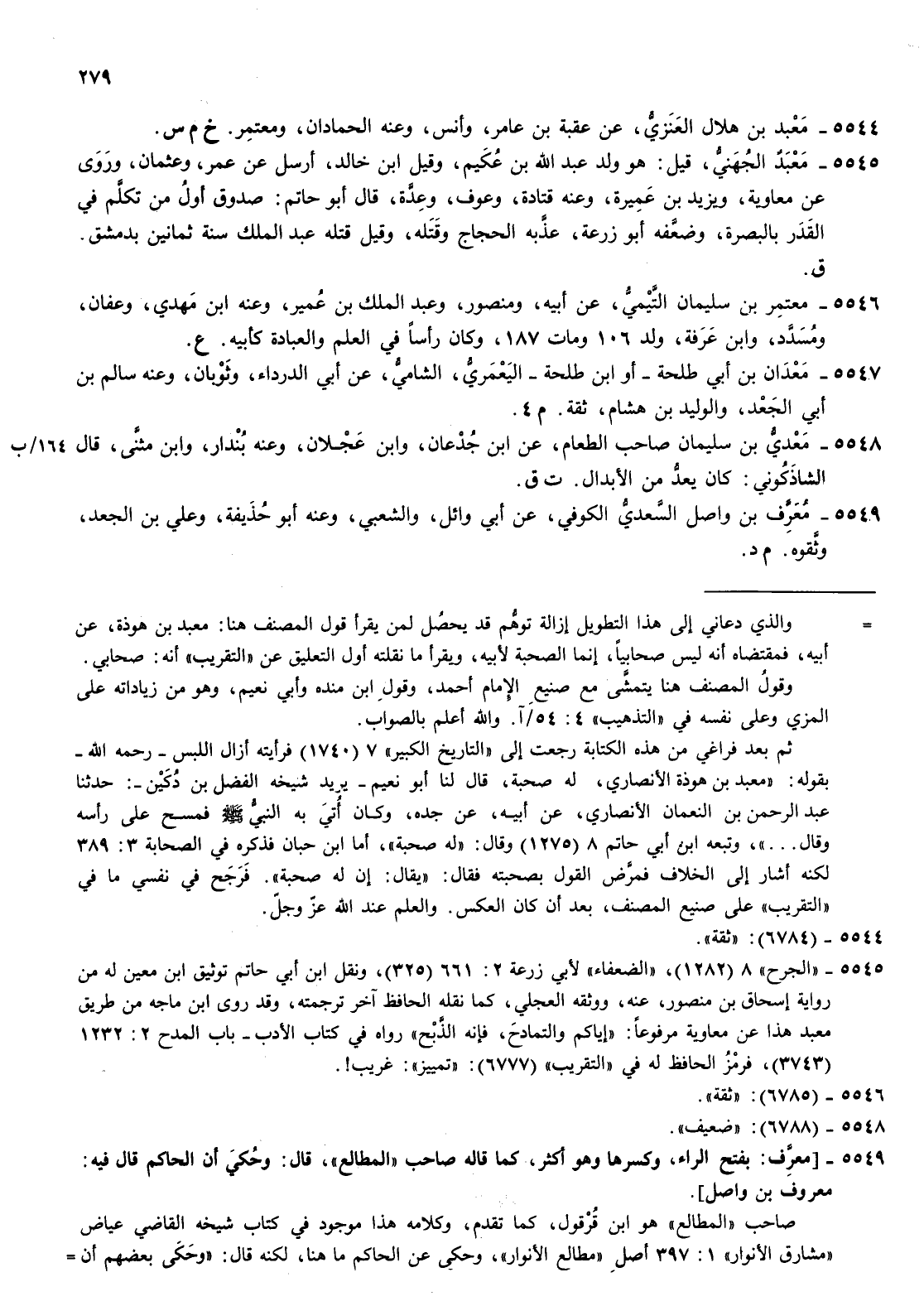 5546- معتمر بن سليمان التيمي عن أبيه ومنصور وعبد الملك بن عمير وعنه بن مهدي وعفان ومسدد وابن عرفة ولد 106 ومات 187 وكان رأسا في العلم والعبادة كأبيه ع