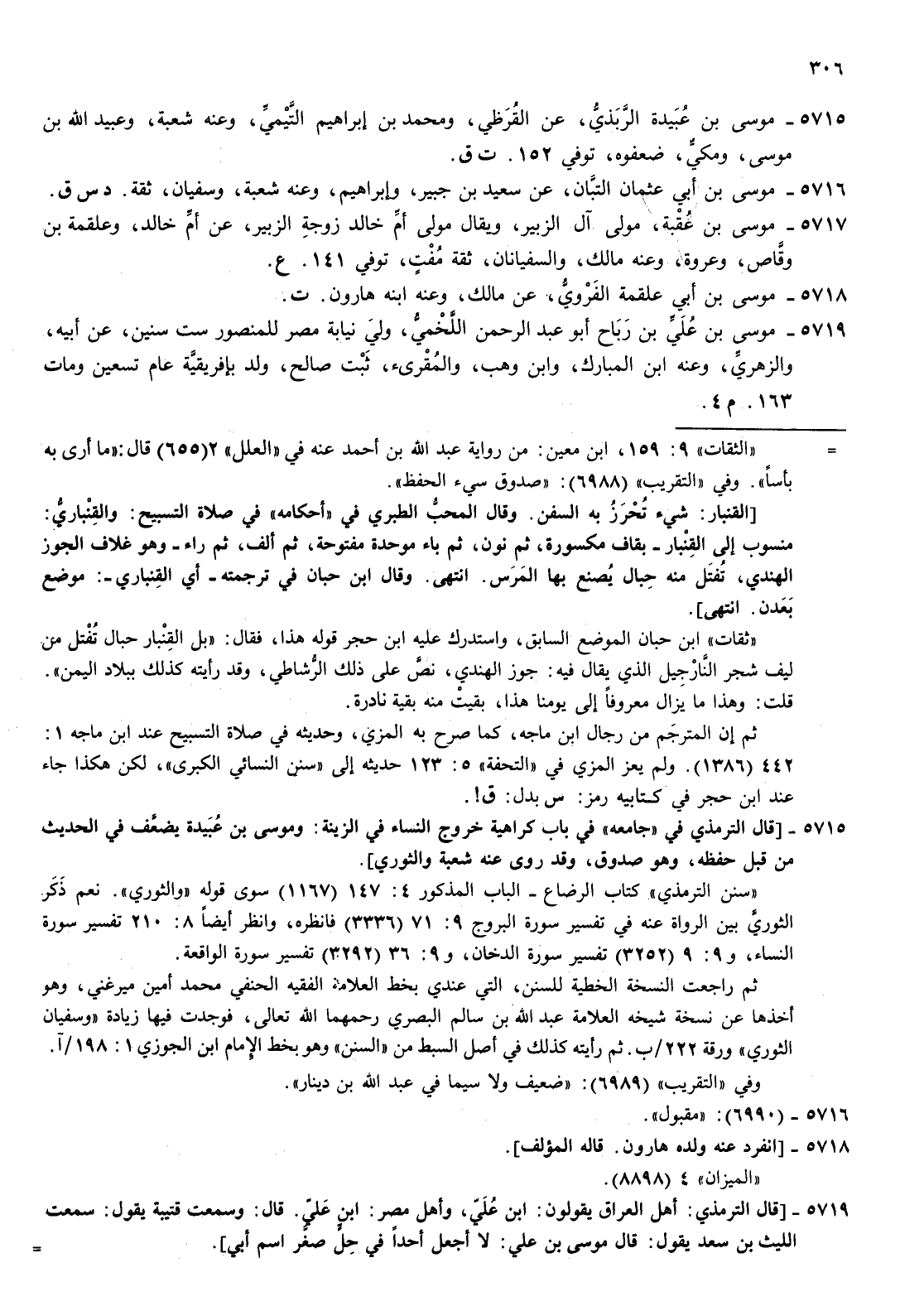 5719- موسى بن علي بن رباح أبو عبد الرحمن اللخمي ولي نيابة مصر للمنصور ست سنين عن أبيه والزهري وعنه بن المبارك وابن وهب والمقرئ ثبت صالح ولد بإفريقية عام تسعين ومات 163 م 4