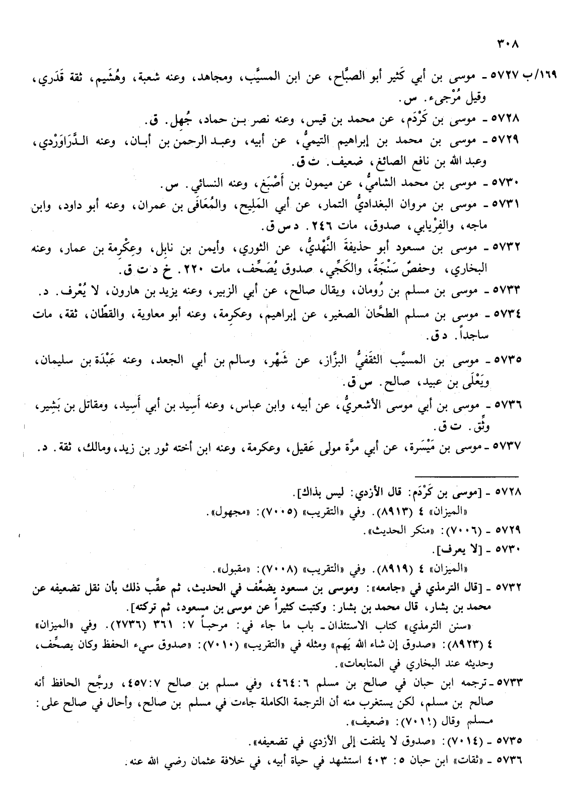 5734- موسى بن مسلم الطحان الصغير عن إبراهيم وعكرمة وعنه أبو معاوية والقطان ثقة مات ساجدا د ق
