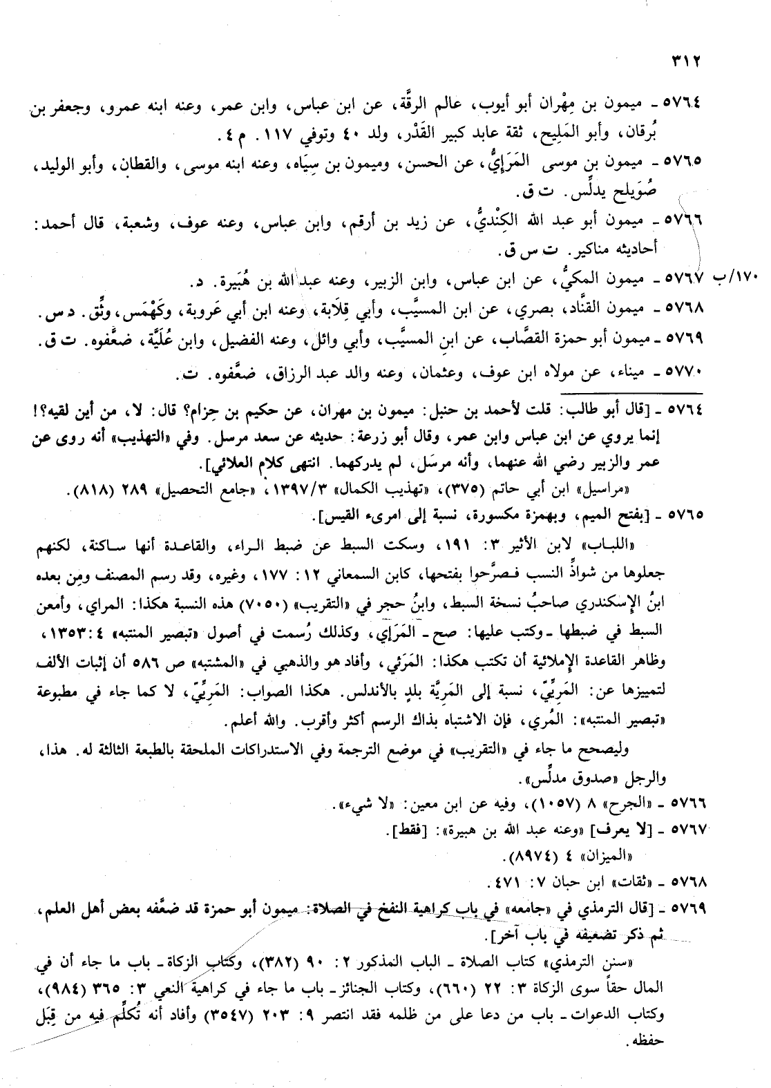 5764- ميمون بن مهران أبو أيوب عالم الرقة عن بن عباس وابن عمر وعنه ابنه عمرو وجعفر بن برقان وأبو المليح ثقة عابد كبير القدر ولد 4 وتوفي 117 م 4