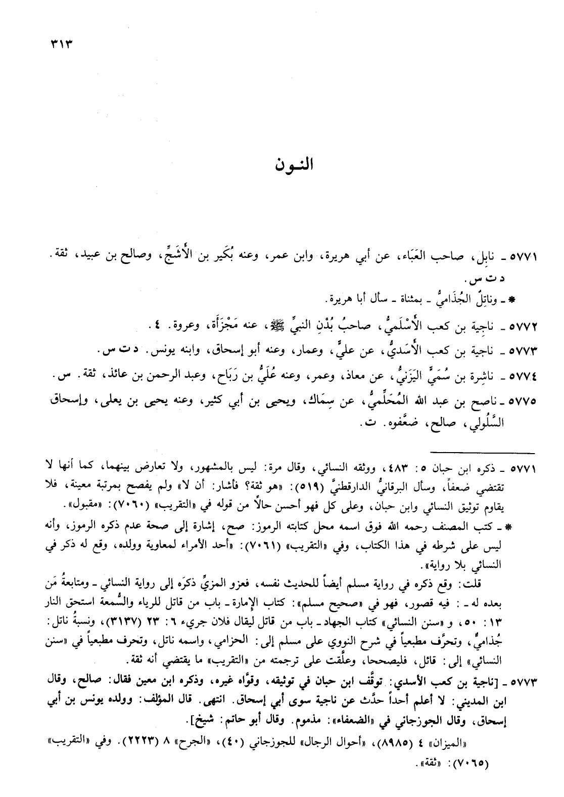 5771- نابل صاحب العباء عن أبي هريرة وابن عمر وعنه بكير بن الاشج وصالح بن عبيد ثقة د ت س وناتل الجذامي بمثناه سأل أبا هريرة