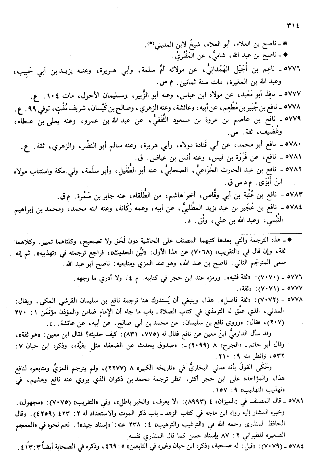 5780- نافع أبو محمد عن أبي قتادة مولاه وأبي هريرة وعنه سالم أبو النضر والزهري ثقة ع
