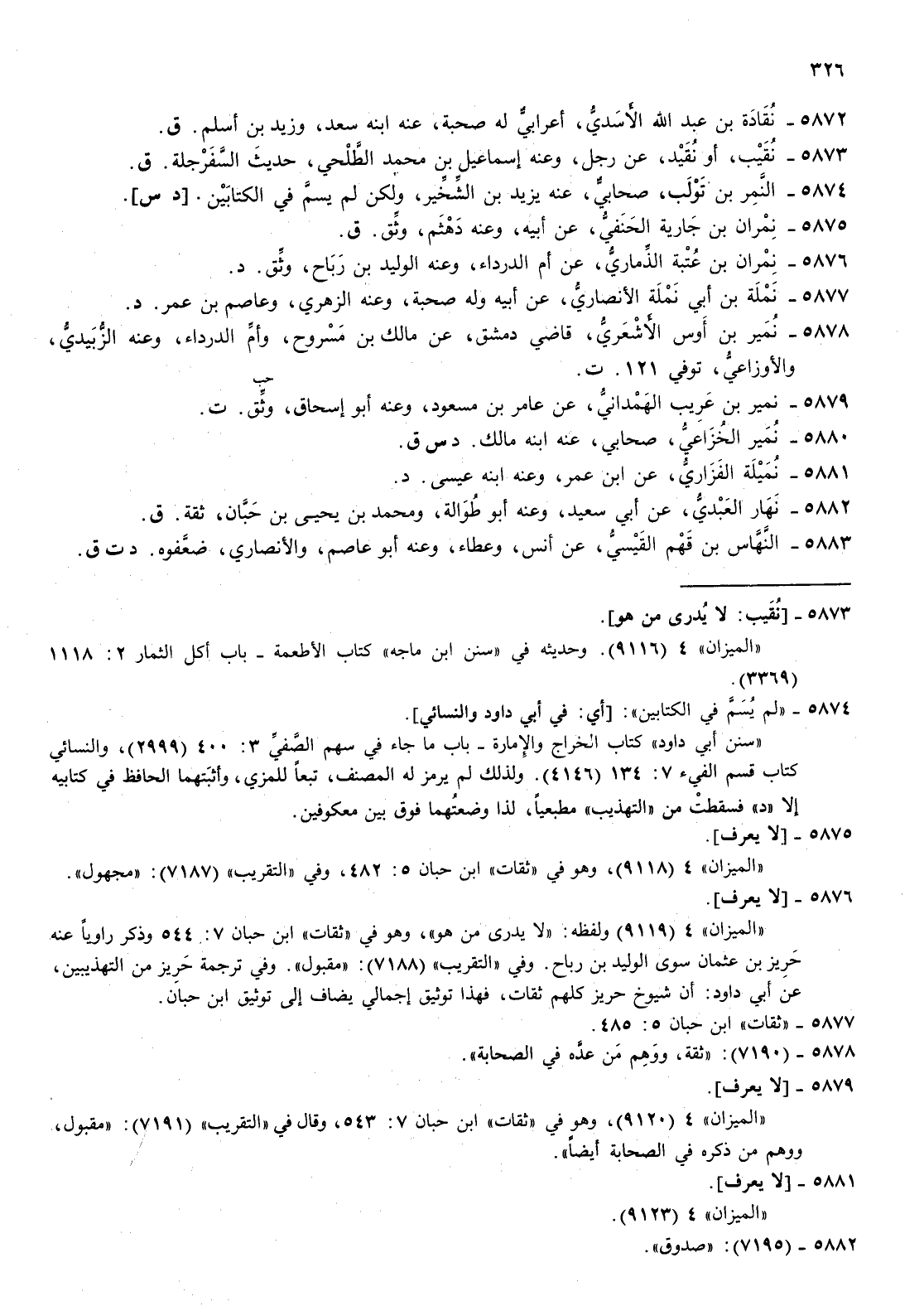 5876- صلى الله عليه وسلم نمران بن عتبة الذماري عن أم الدرداء وعنه الوليد بن رباح وثق د