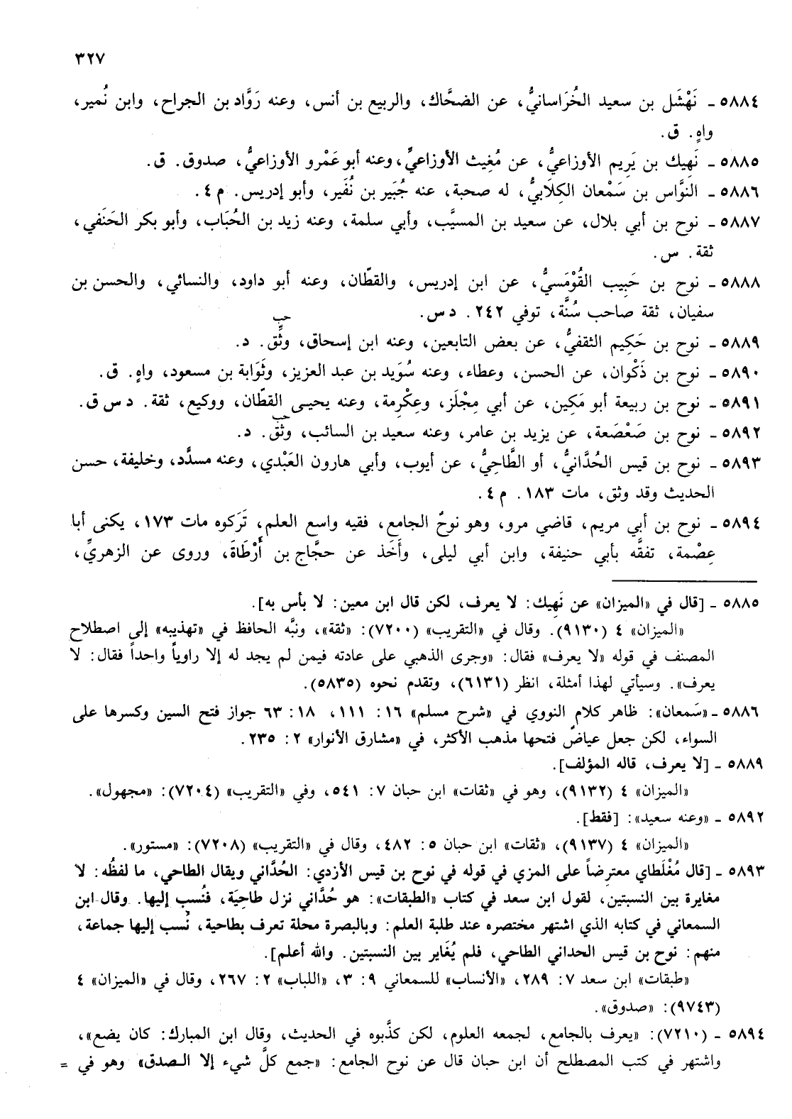 5888- نوح بن حبيب القومسي عن بن إدريس والقطان وعنه أبو داود والنسائي والحسن بن سفيان ثقة صاحب سنة توفي 242 د س