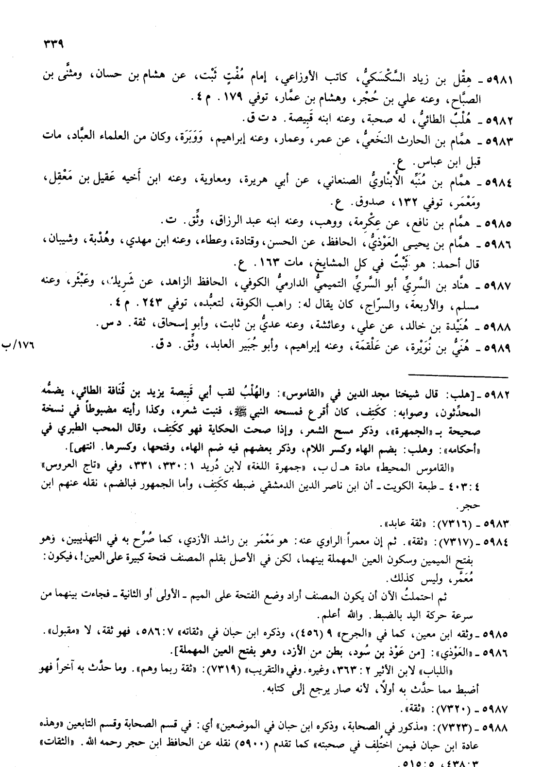 5986- همام بن يحيى العوذي الحافظ عن الحسن وقتادة وعطاء وعنه بن مهدي وهدبة وشيبان قال