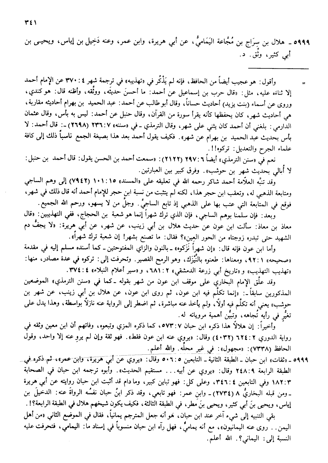5999- هلال بن سراج بن مجاعة اليمامي عن أبي هريرة وابن عمر وعنه دخيل بن إياس ويحيى بن