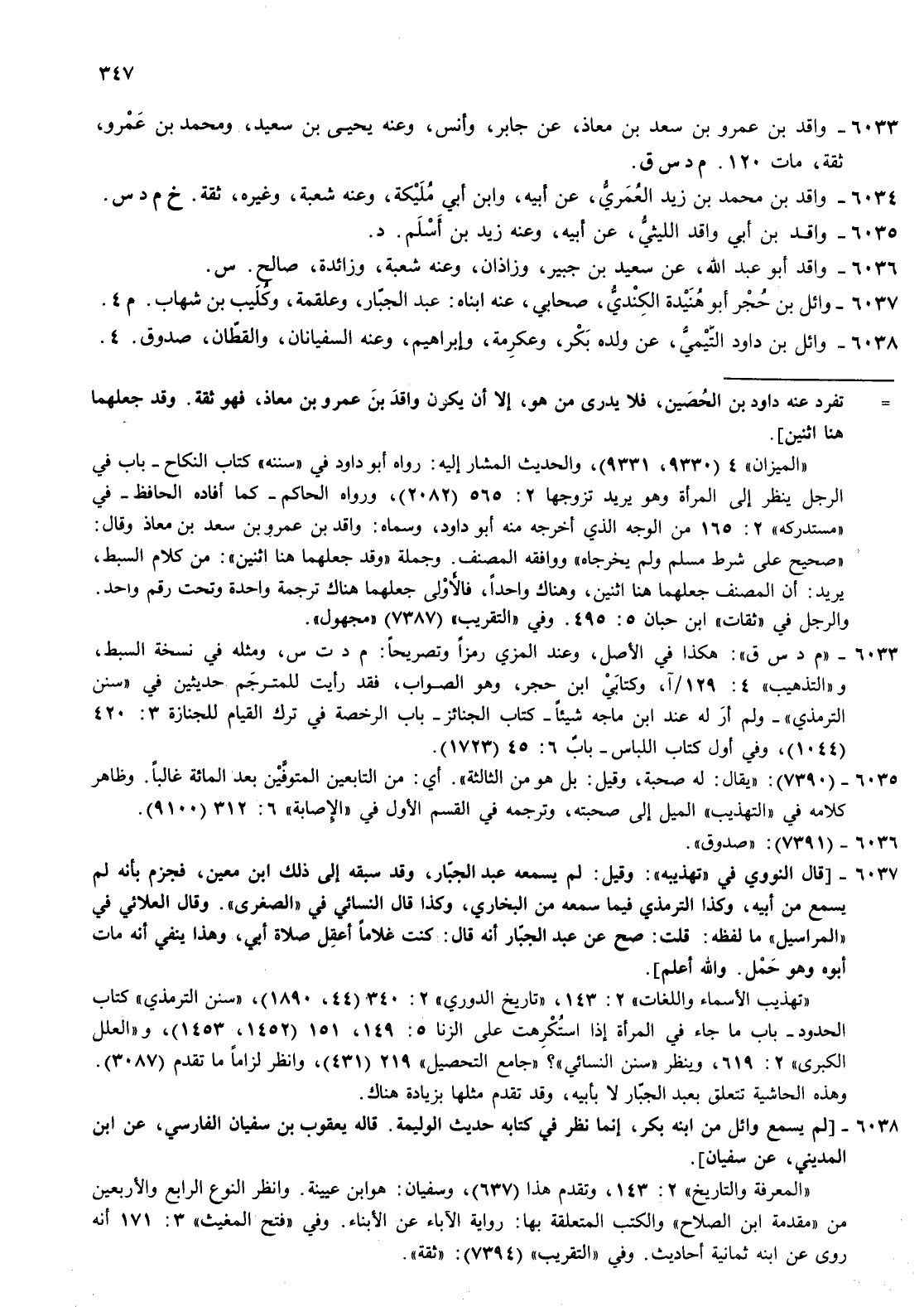 6033- واقد بن عمرو بن سعد بن معاذ عن جابر وأنس وعنه يحيى بن سعيد ومحمد بن عمرو ثقة مات 12 م د س ق