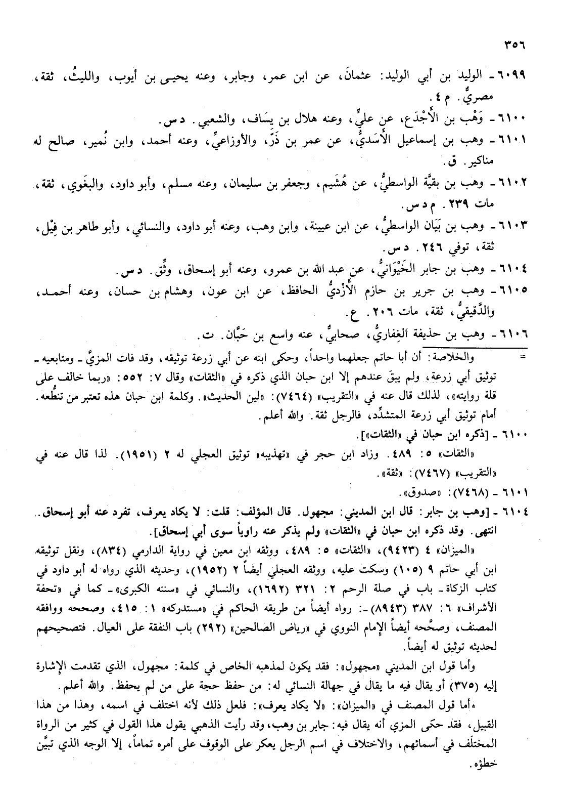 6105- وهب بن جرير بن حازم الازدي الحافظ عن بن عون وهشام بن حسان وعنه أحمد والدقيقي ثقة مات 206 ع