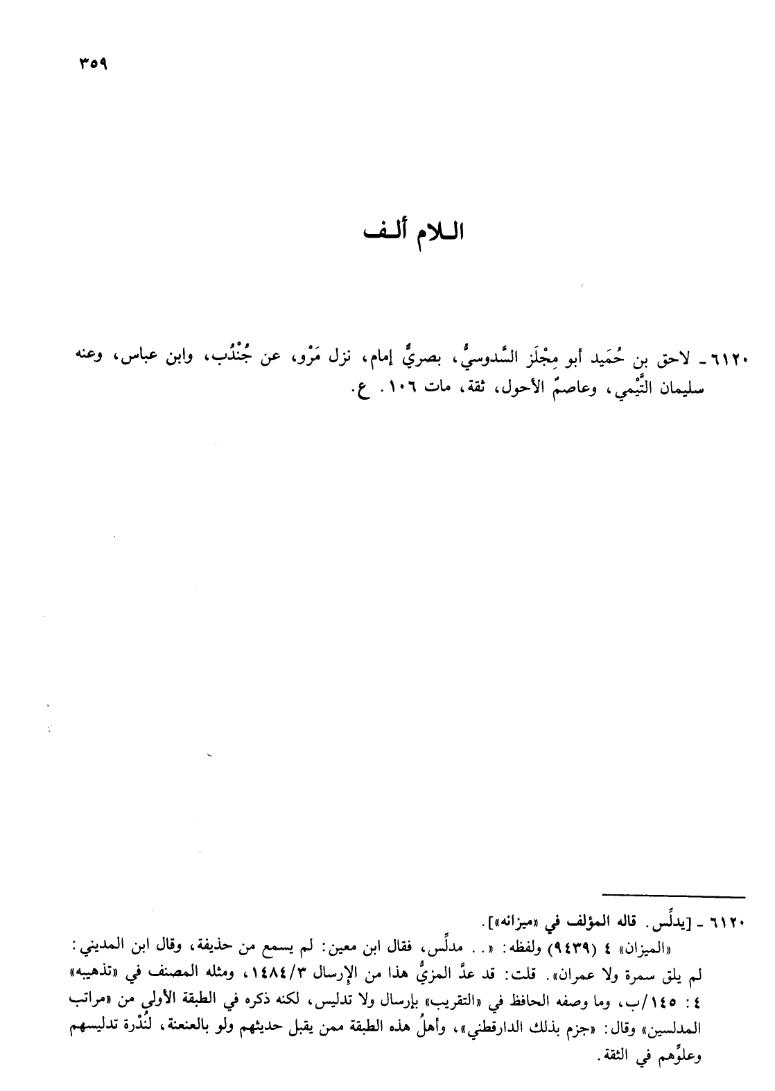 6120- لاحق بن حميد أبو مجلز السدوسي بصري إمام نزل مرو عن جندب وابن عباس وعنه سليمان التيمي وعاصم الاحول ثقة مات 106 ع