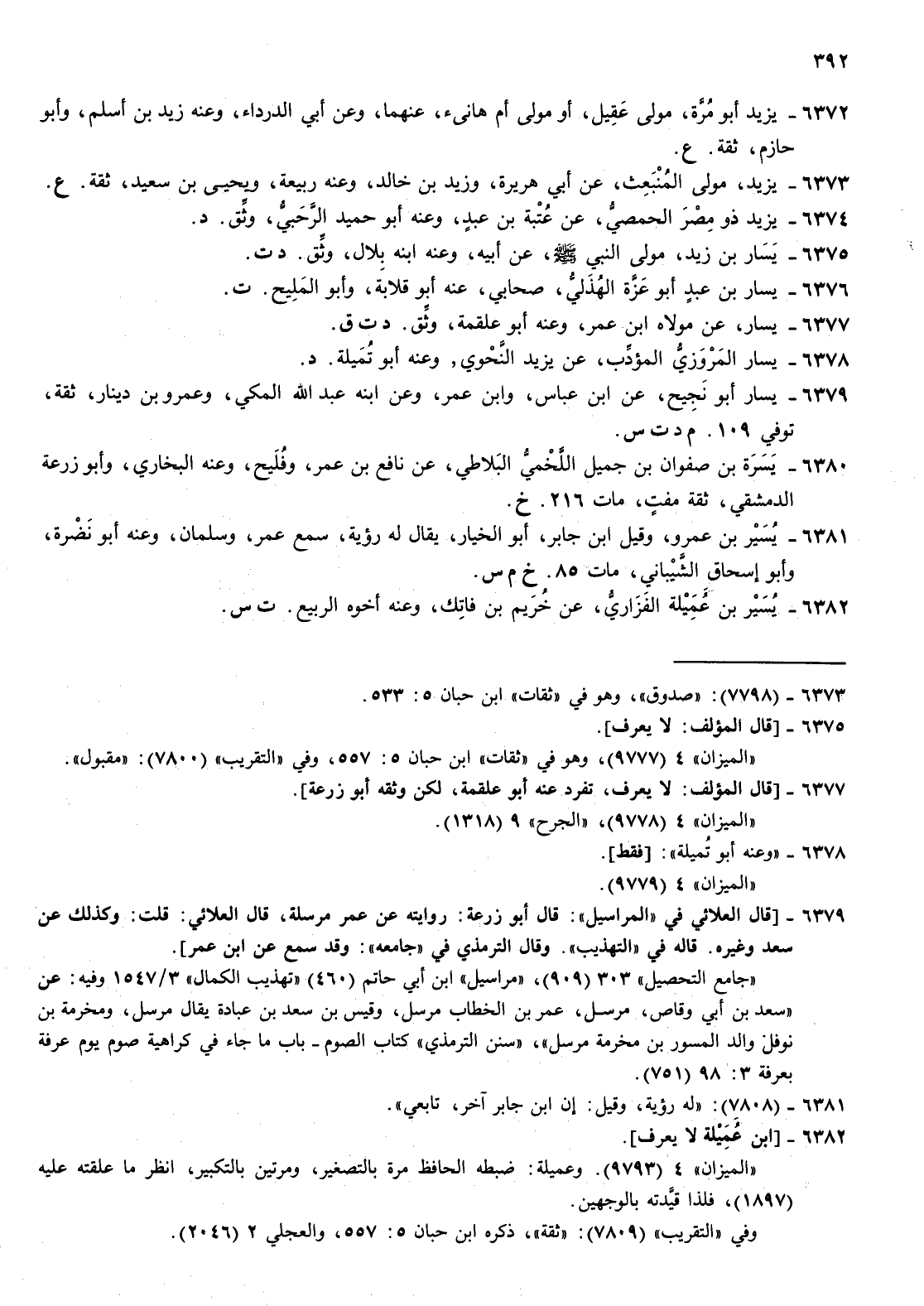 6379- يسار أبو نجيح عن إبن عباس وابن عمر وعن ابنه عبد الله المكي وعمرو بن دينار ثقة توفي 109 م د ت س