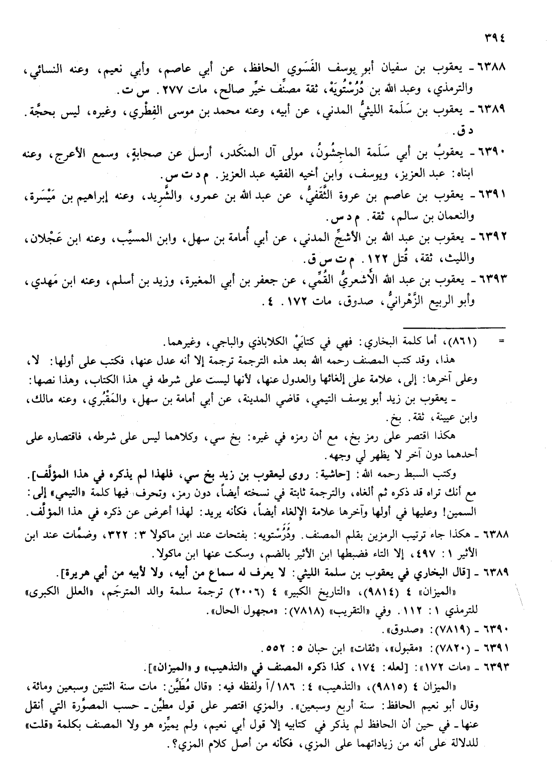 6388- يعقوب بن سفيان أبو يوسف الفسوي الحافظ عن أبي عاصم وأبي نعيم وعنه النسائي والترمذي وعبد الله بن درستويه ثقة مصنف خير صالح مات 277 س ت