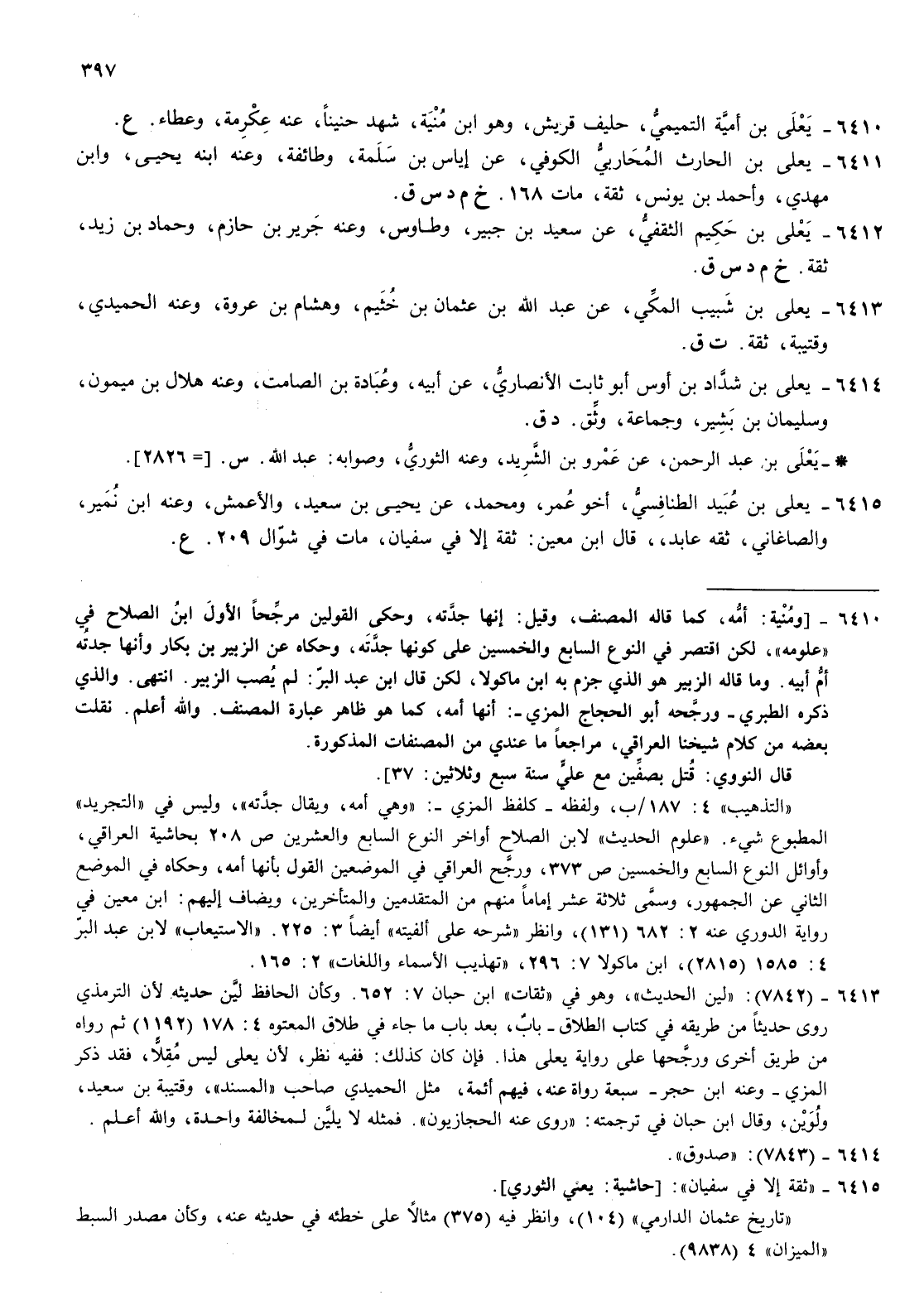 6410- يعلى بن أمية التميمي حليف قريش وهو بن منية شهد حنينا عنه عكرمة وعطاء ع