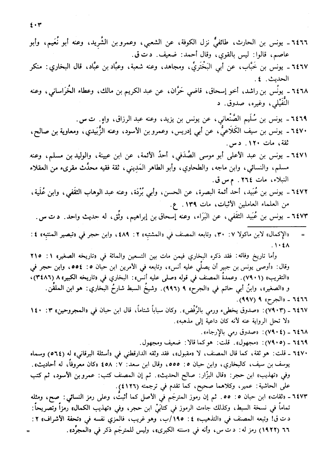 6472- يونس بن عبيد أحد أئمة البصرة عن الحسن وأبي بردة وعنه عبد الوهاب وأبو الطاهر المديني ثقة فقيه محدث مقرئ من العقلاء النبلاء مات 264 م س ق الثقفي وابن علية من العلماء العاملين الاثبات مات 139 ع