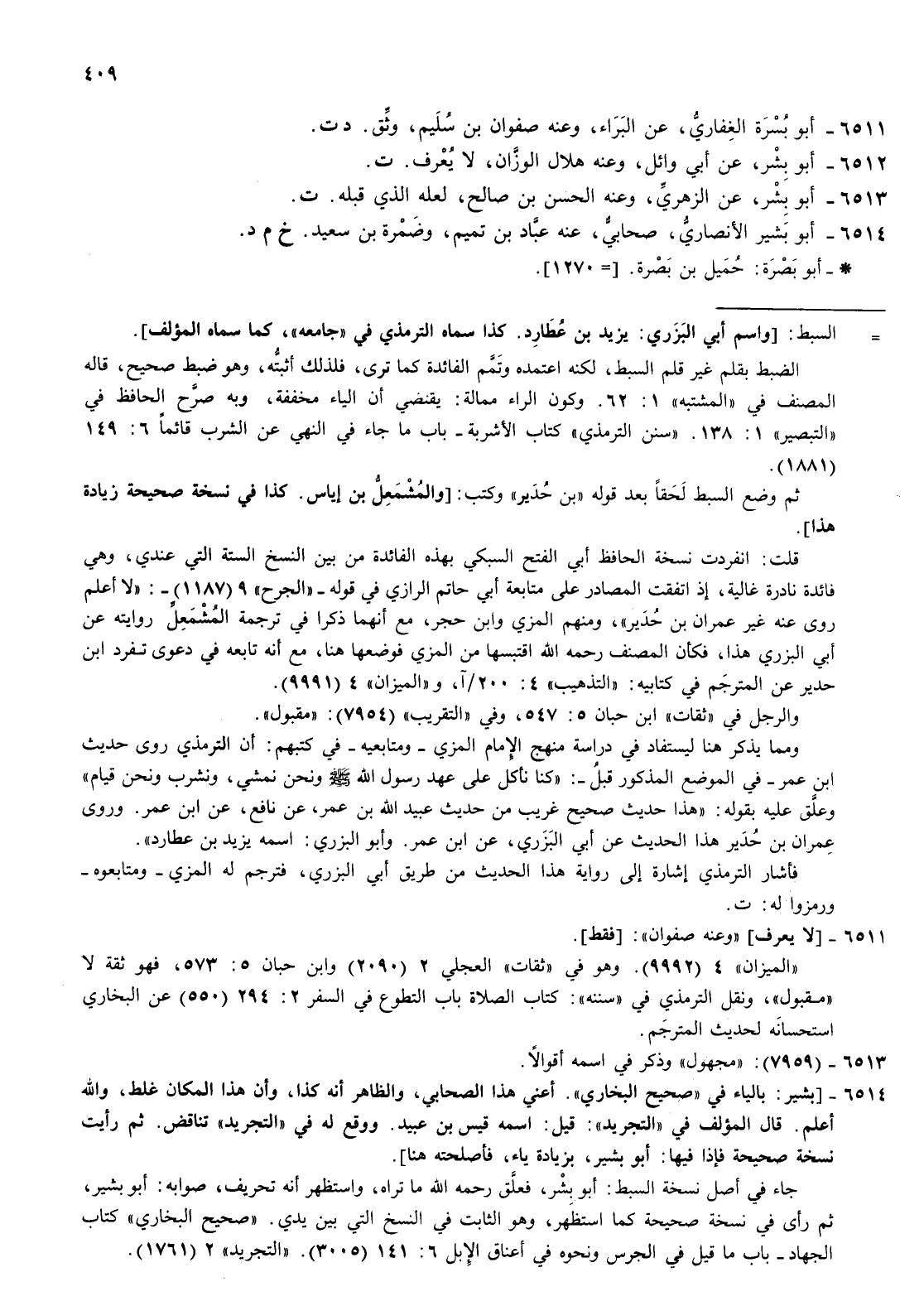 6514- أبو بشير الانصاري صحابي عنه عباد بن تميم وضمرة بن سعيد خ م د أبو بصرة حميل بن بصرة أبو بصرة حميل بن بصرة 127
