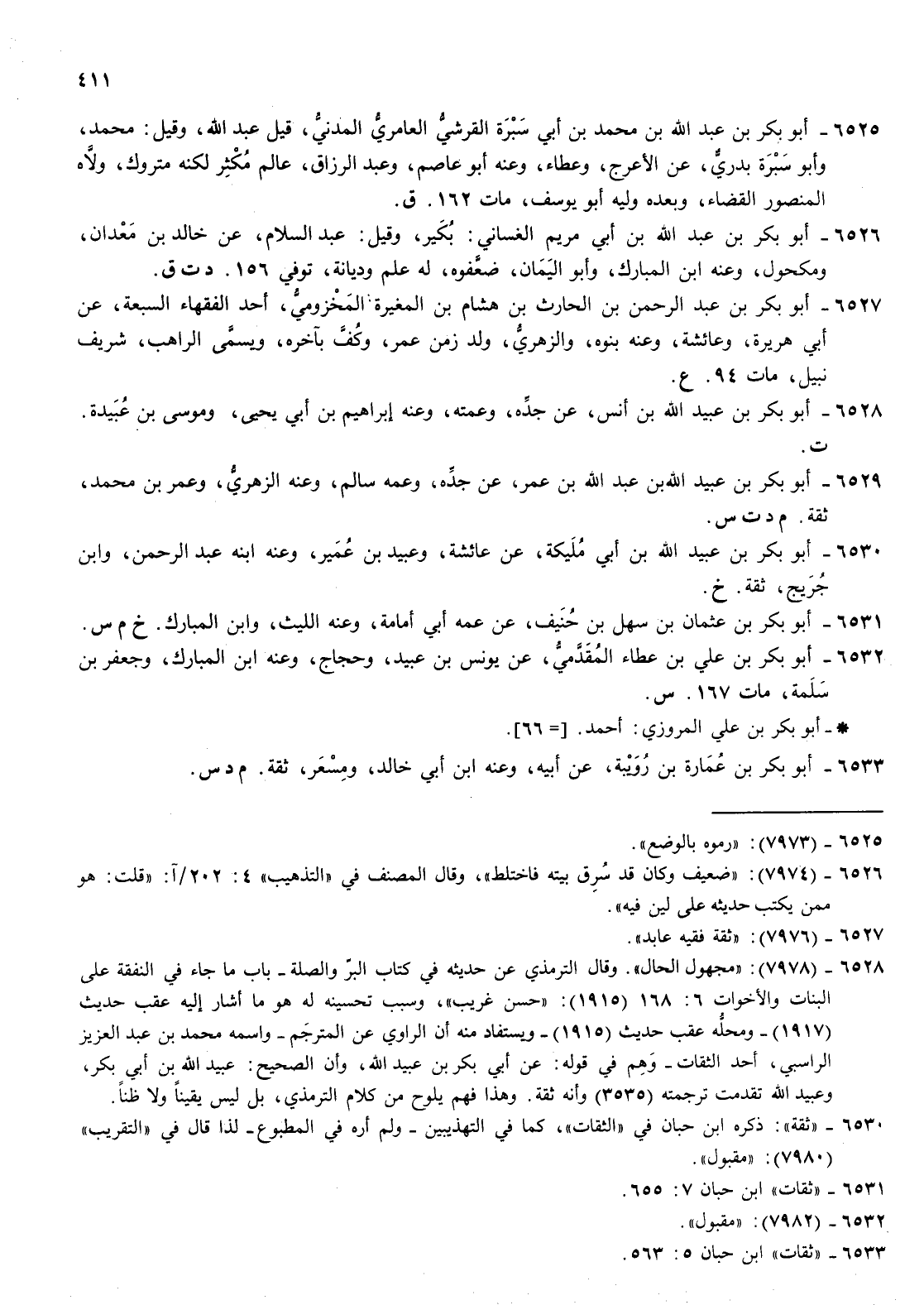 6532- أبو بكر بن علي بن عطاء المقدمي عن يونس بن عبيد وحجاج وعنه بن المبارك وجعفر بن سلمة مات 167 س أبو بكر بن علي المروزي أحمد " أبو بكر بن علي المروزي أحمد 66