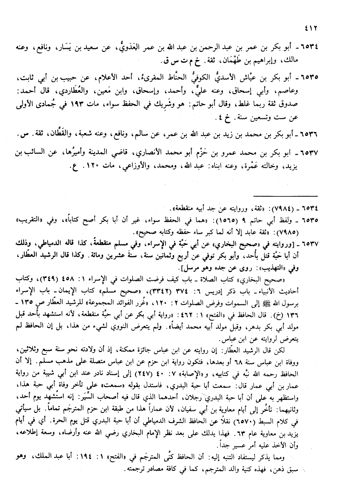 6536- أبو بكر بن محمد بن زيد بن عبد الله بن عمر عن سالم ونافع وعنه شعبة والقطان ثقة س