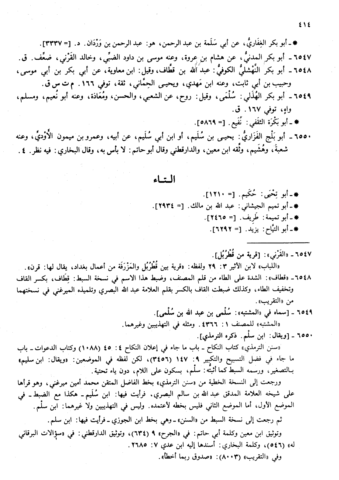 أبوتحيى حكيم أبو تحيى حكيم 121 أبو تميم الجيشاني عبد الله بن مالك أبو تميم الجيشاني عبد الله بن مالك 2934 أبو تميمة طريف أبو تميمة طريف 2465 أبوالتياح يزيد أبوالتياح يزيد 6292