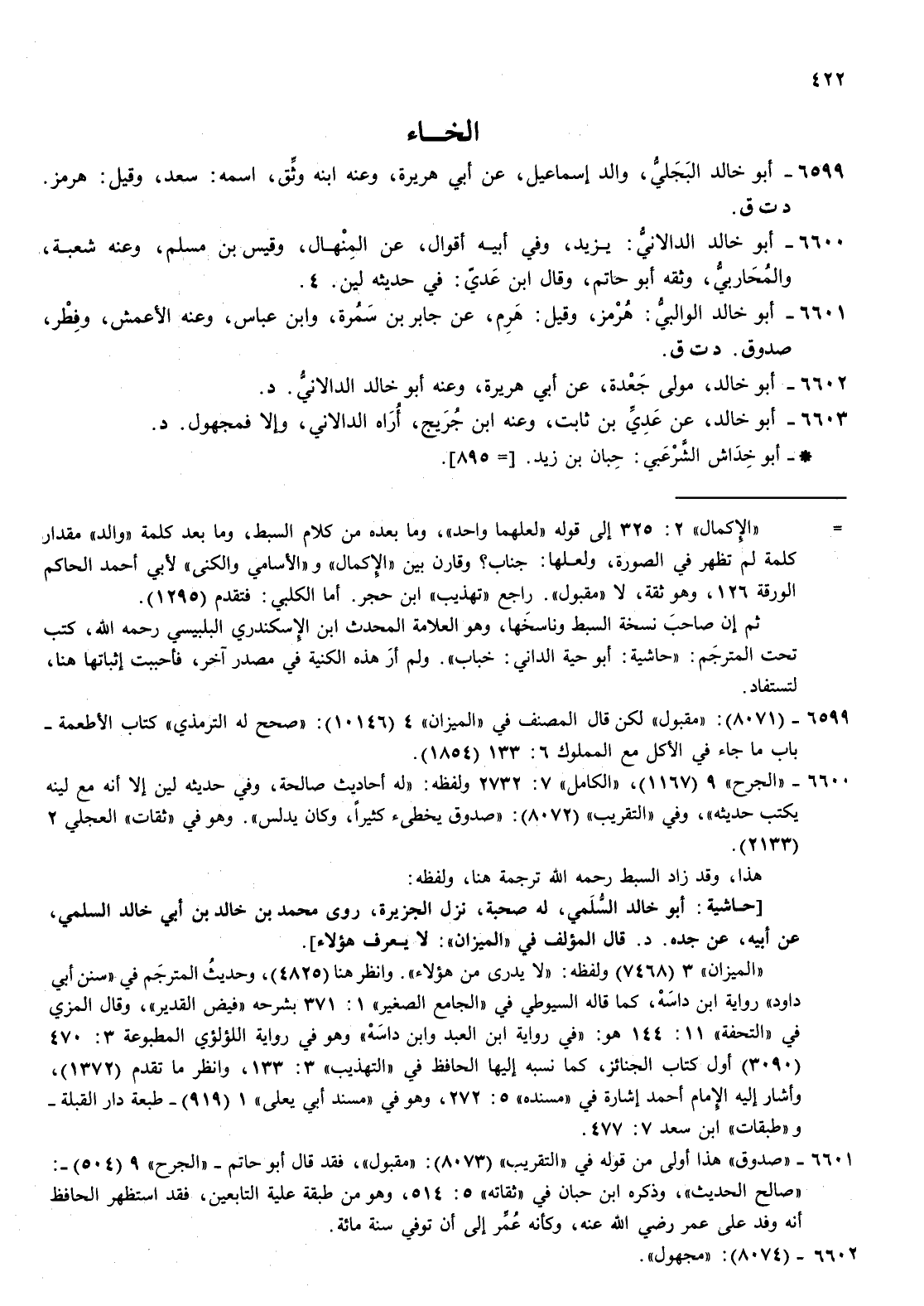 6603- أبو خالد عن عدي بن ثابت وعنه بن جريج أراه الدالاني وإلا فمجهول د أبوخداش الشرعبي حبان بن زيد أبوخداش الشرعبي حبان بن زيد 895