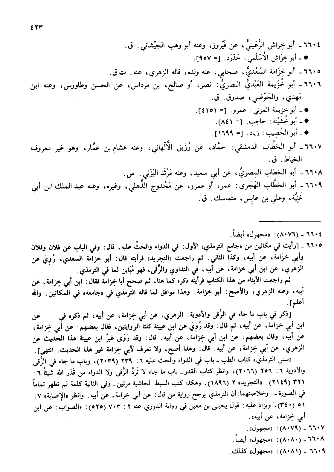 6606- أبو خزيمة العبدي البصري نصر أو صالح بن مرداس عن الحسن وطاووس وعنه بن مهدي والحوضي صدوق ق أبو خزيمة المزني عمرو أبو خزيمة المزني عمرو 4151 أبوخشينة حاجبأبو خشينة حاجب 841 أبو الخصيب زياد أبو الخصيب زياد 1699