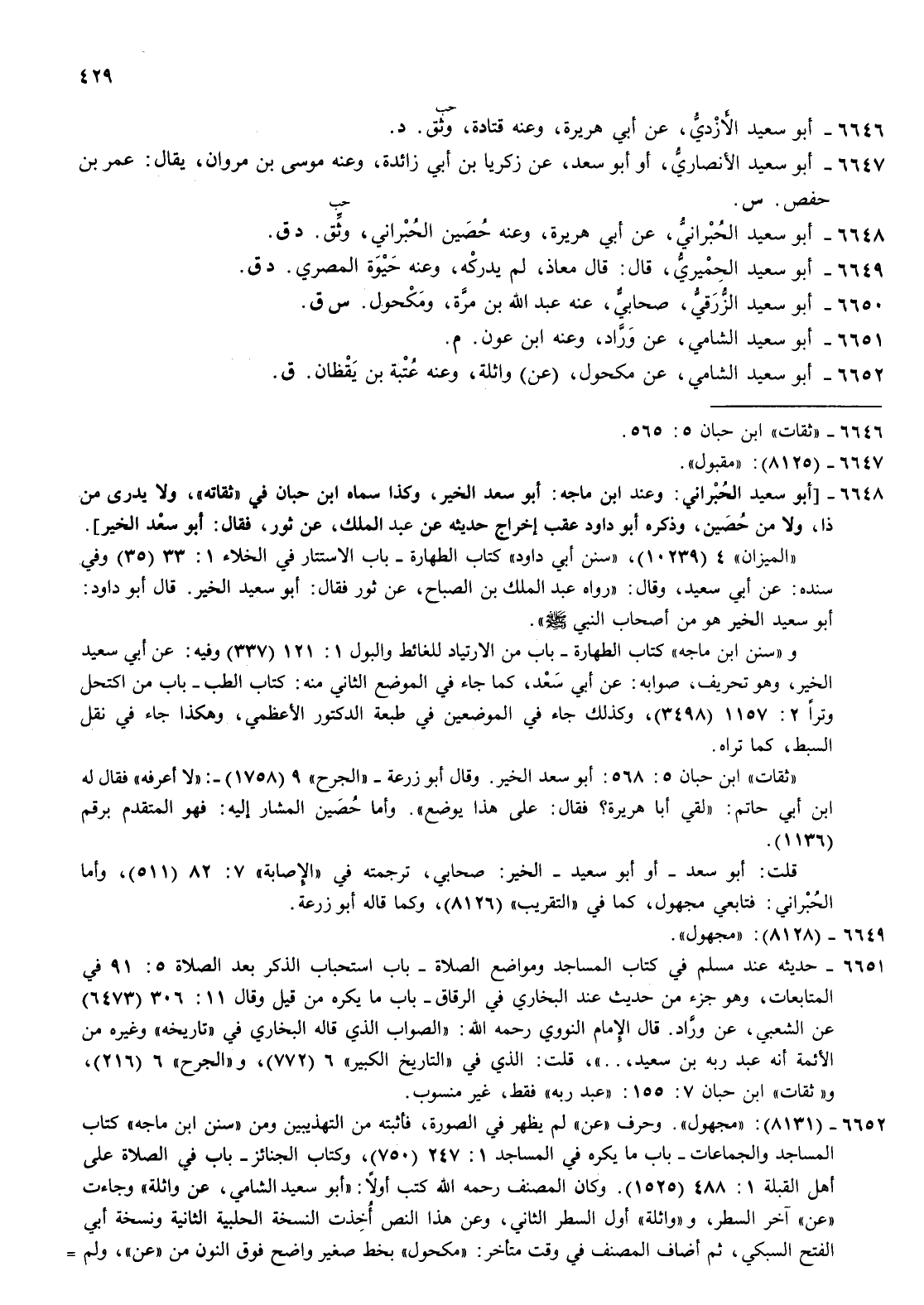 6648- أبو سعيد الحبراني عن أبي هريرة وعنه حصين الحبراني وثق حب د ق